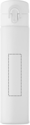 Double wall drinking bottle in recycled stainless steel (90% recycled stainless steel and 10% stainless steel) with security lock on the lid and press-to-open option. Leak free. Capacity: 300ml.