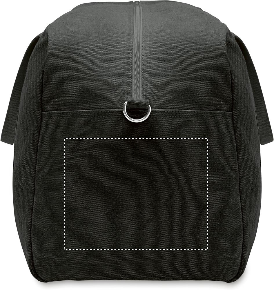 Duffle travel bag in recycled 450 gr/m² fabrics (60% recycled cotton and 40% recycled polyester) with adjustable and detachable cotton strap.