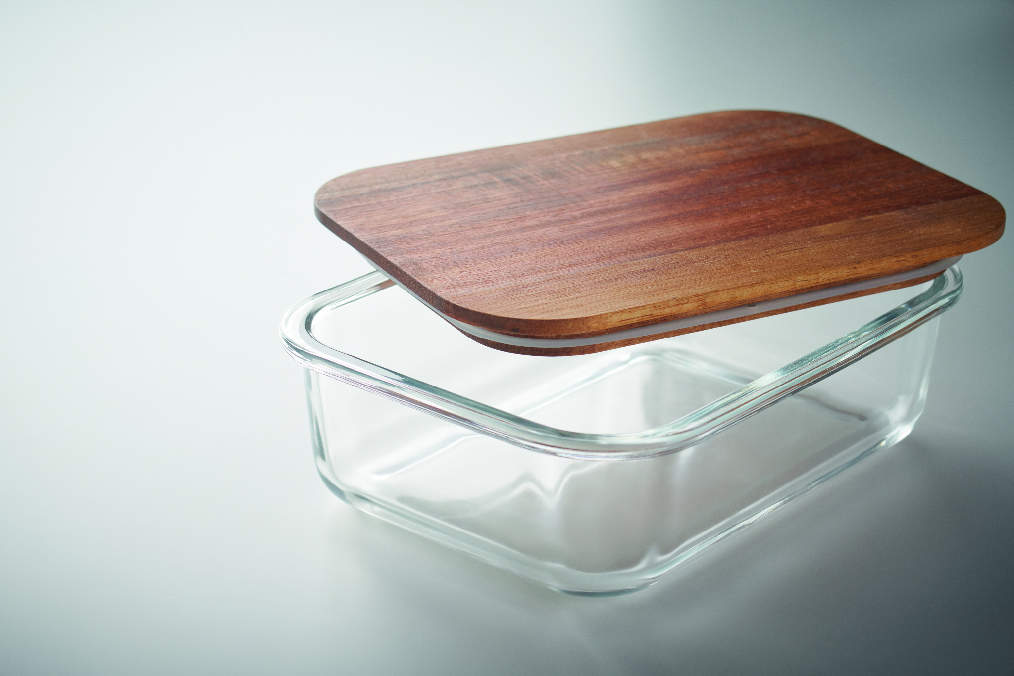 Lunch box in glass with acacia wooden lid and RPET elastic band closure. Capacity: 800 ml FSC®-certified | FSC 100%, W16.3, FSC-C213206