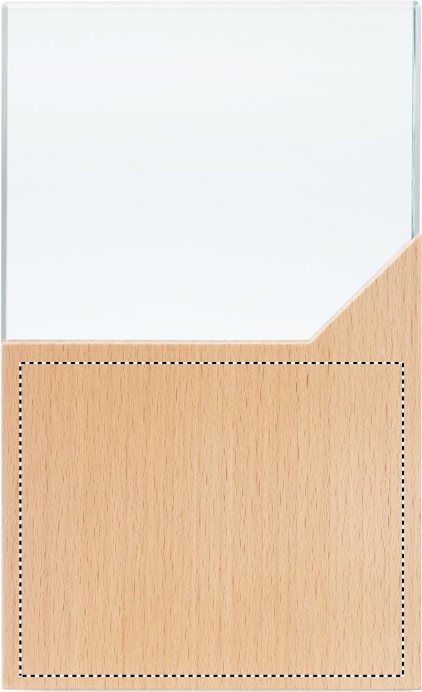 Хрустальная награда или наградная табличка на деревянном основании из бука в подарочной коробке.