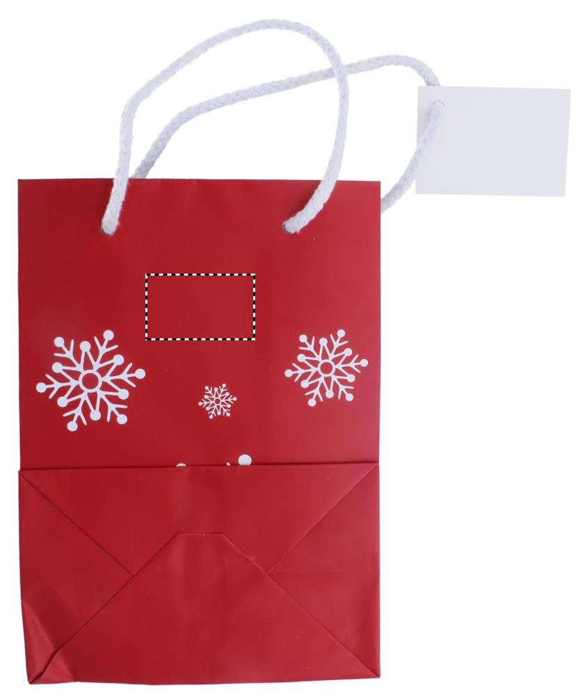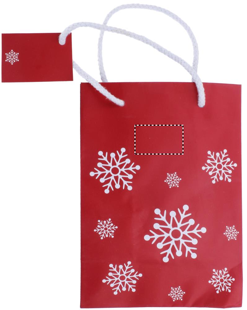 Подарочный пакет в новом новогоднем дизайне, украшенный снежинками. Маленький размер.