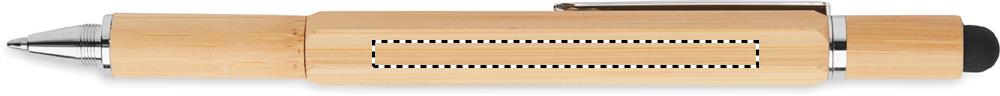 Бамбуковая ручка с уровнем, линейкой 7 см, стилусом, насадками для шурупов с крестообразной и плоской головкой. Синие чернила.