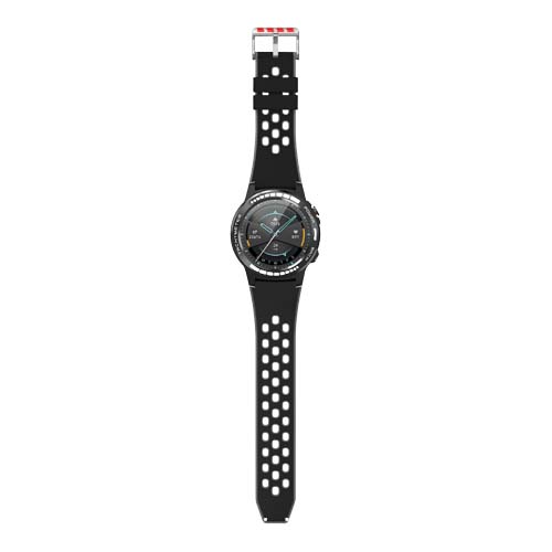 Smartwatch with GPS that generates a map on a mobile device with the route taken. Includes a compass and barometer. Monitors heart rate and blood pressure. Multi-sport mode, steps and calories counter, distance traveled. It also monitors sleep quality and keeps track of daily physical activities. SIM card slot (SIM card not included). Notifications of email, calls, messages, and social networks. Siri Voice Assistant. 360 mAh Li-ion battery. Bluetooth 4.0 connection. Standby mode for 7 days.