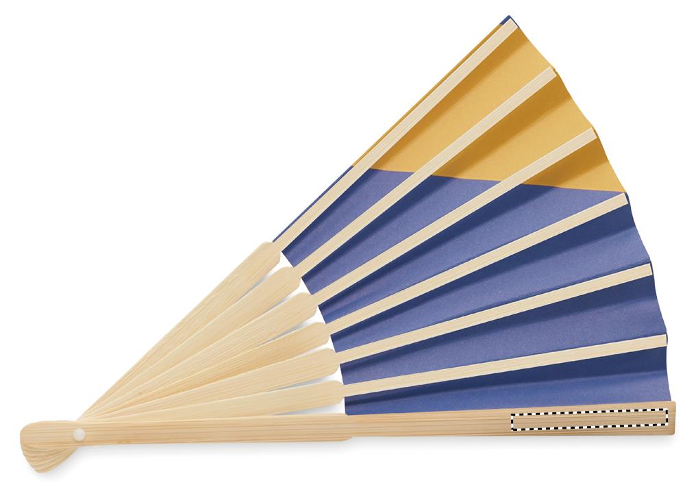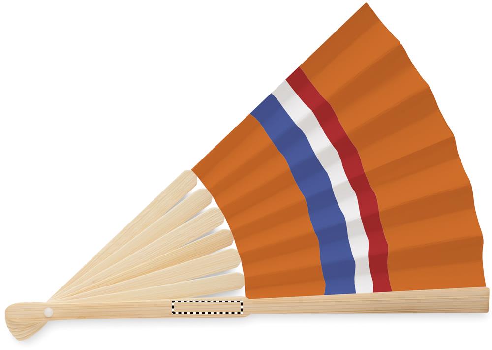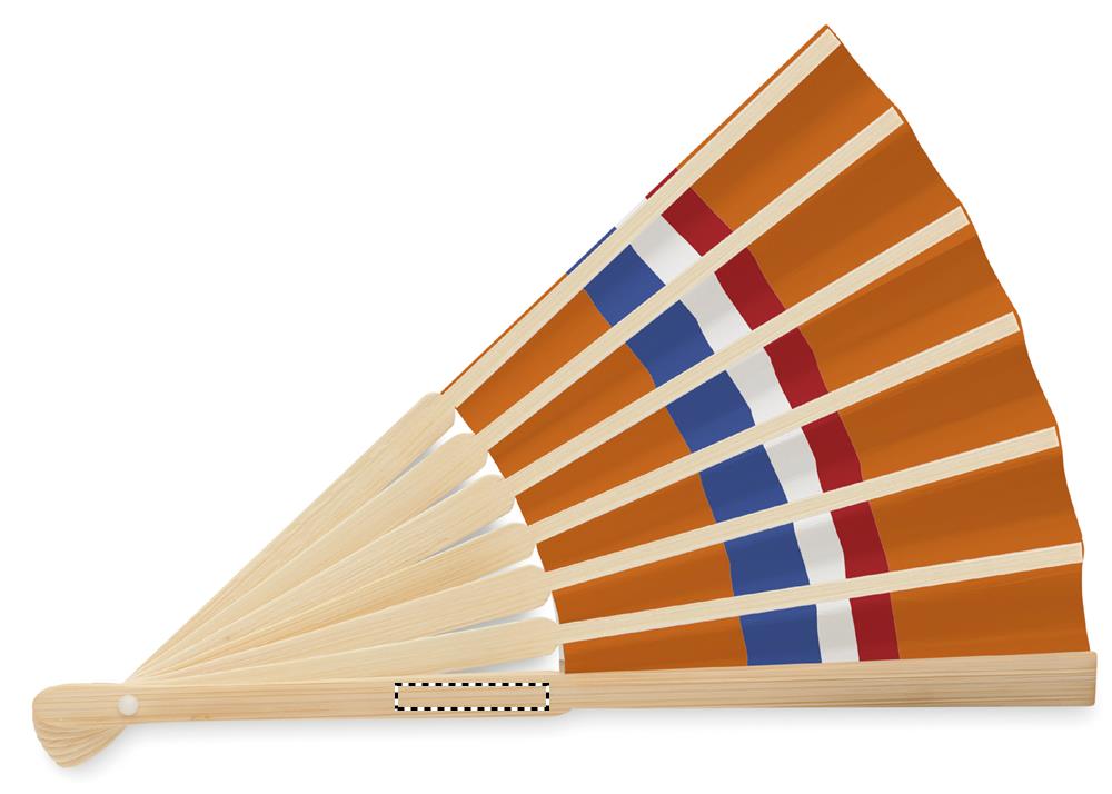 Веер с ручкой из бамбука и рисунком флага на ткани.