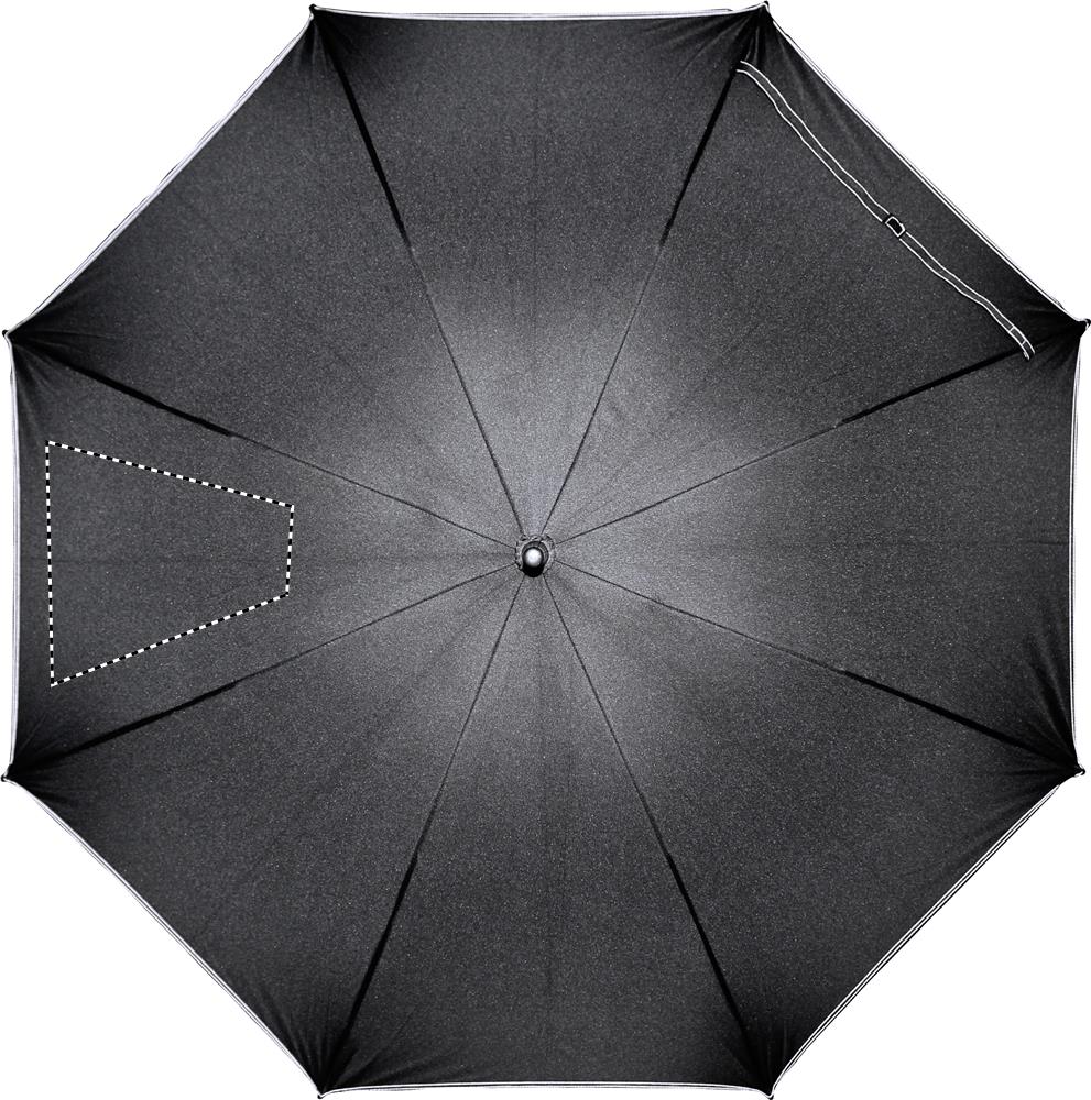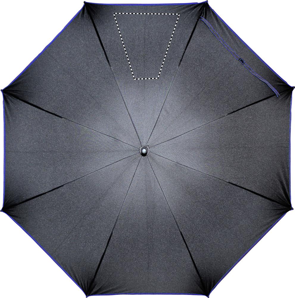 Зонт полуавтомат устойчивый к ветру со стержнем из стекловолокна и черной пластиковой ручкой. Длина в сложенном виде 23 см.