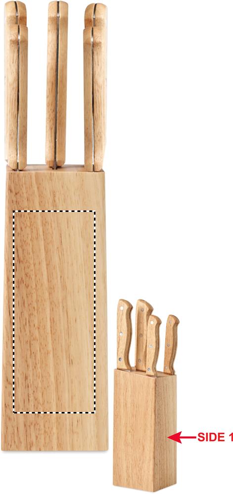 Knivset med 5 knivar: kock, bröd, skivning, multifunktion och skalkniv. Alla knivar passar perfekt i träblocket. Trätouchen ger ett fint, naturligt och elegant utseende i ditt kök. En komplett uppsättning för att skära grönsaker, kött, fisk och bröd för att laga de mest läckra måltiderna. Knivarna är gjorda av rostfritt stål och har ett trähandtag. Trä är ett naturligt material och det kan finnas små variationer i färg och storlek per artikel, vilket kan påverka det slutliga märkresultatet.