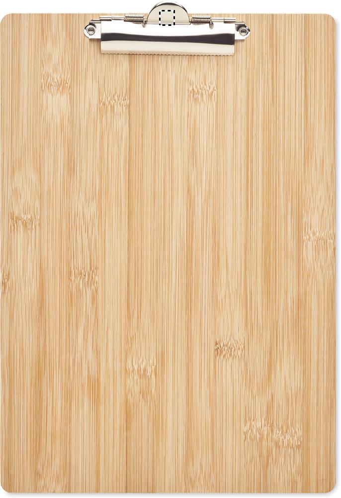A4 Skrivplatta i bambu med klämma för att fästa block eller dokument.
