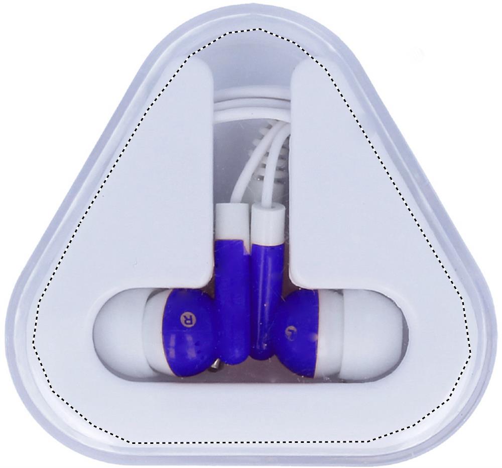Hörlurar i PVC inrymt i trekantigt silikonfodral med ABS hölje . Kabellängd 120 cm.