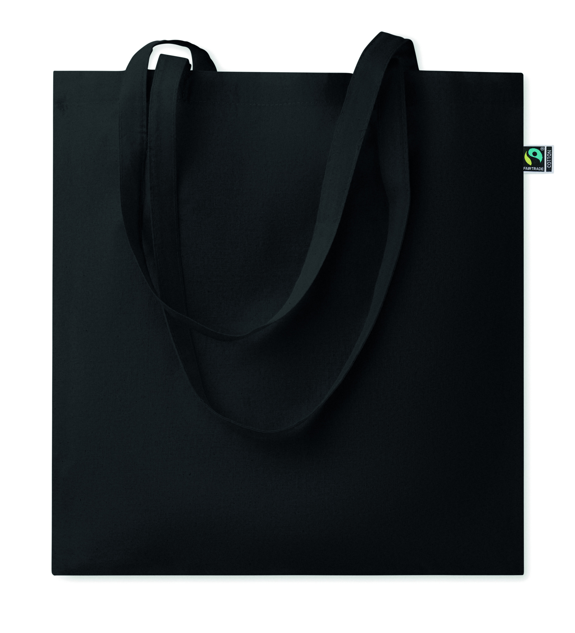 Kasse i Fairtrade-märkt bomull med långa handtag. 180 gr/m². Denna produkt är certifierad enligt OEKO-TEX® STANDARD 100.