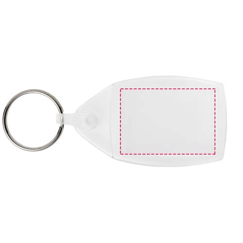Lita nyckelring P6 med plastklämma. Genomskinlig nyckelring P6 med delad metallring och dynamisk plastklämma. Plastklämman har en platt profil som är idealisk för utskick. Tryckinläggets dimensioner: 3,5 cm x 2,4 cm. GPPS-plast.