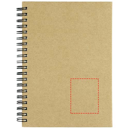 Spiralbunden anteckningsbok med omslag av återvunnet papper, 60 linjerade blad av återvunnet papper (70 g/m²) .