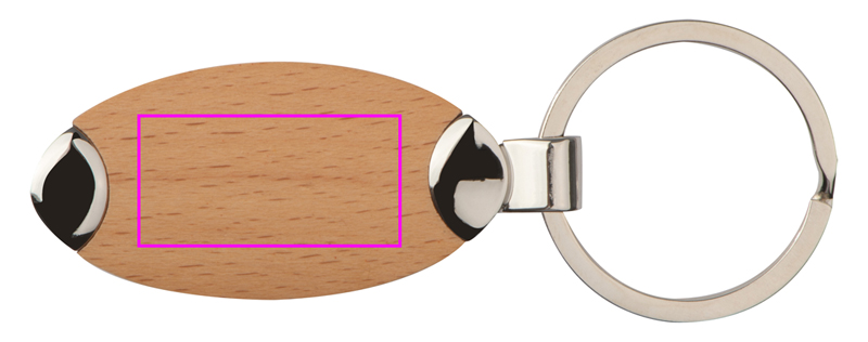 Elegant nyckelring av metall med en träinsats på vilken din logotyp kommer att graveras.