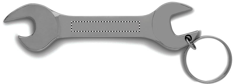 Flasköppnare i form av en skiftnyckel med nyckelring.
