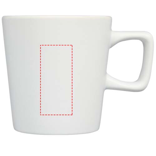 Keramikmugg i modern design med matt yta. Volymkapacitet 280 ml. Alla dekorationsmetoder tål maskindisk. Levereras i en återvunnen presentförpackning av kartong.