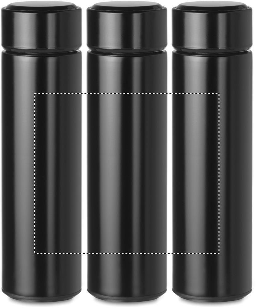 Isolerande vakuumflaska med dubbelvägg i rostfritt stål för både varma och kalla drycker. Den har en LED termometer inbyggd i toppen av locket med touchdisplay och teasil inuti. 1 CR2032 batteri ingår. Läckagesäker. Kapacitet: 450 ml. Läckagefritt.