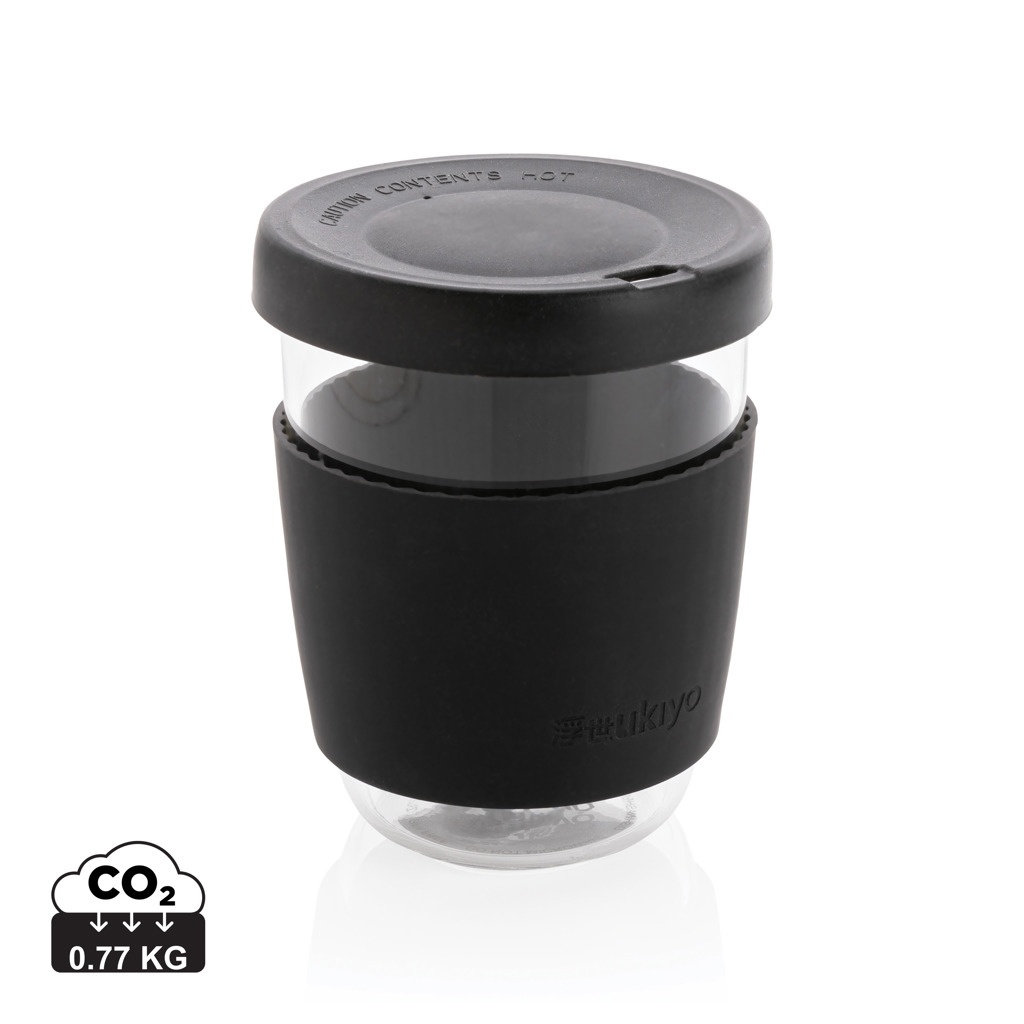 Ukiyo borosilikatglas med silikonlock och sleeve, svart