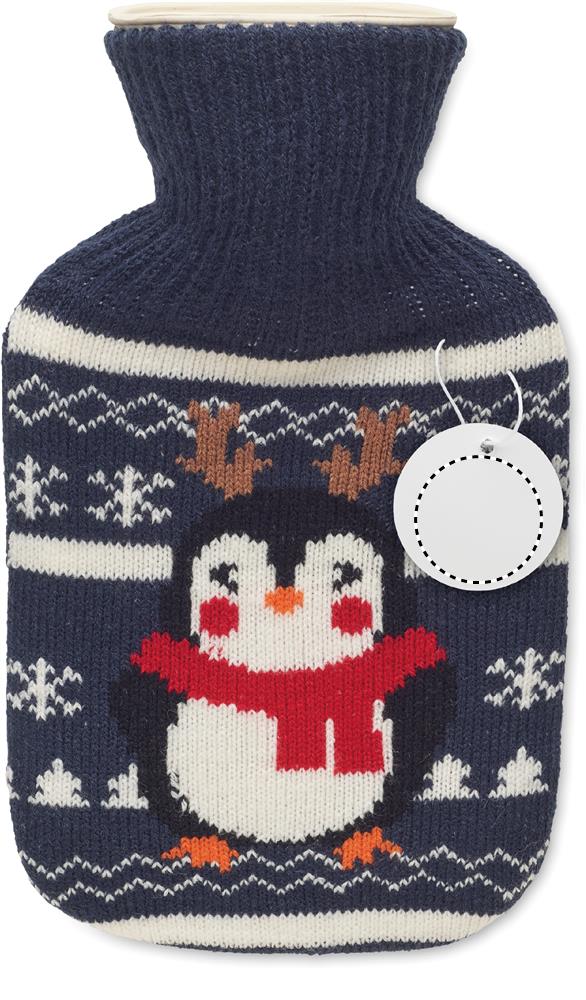 Varmvattenflaska med trikå i julmönster. Används för att ge värme, vanligtvis i sängen, men även för att applicera värme på en specifik del av kroppen. 250 ml kapacitet.